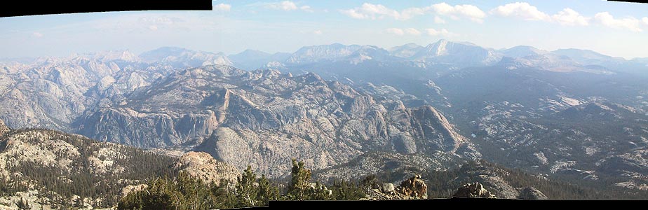 Glen Aulin方面の景色がばーんと広がっている。2週間前に行ったWildcat PointやCold Mountain周辺が